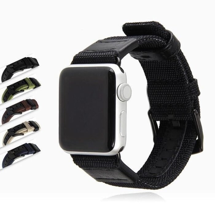 A band Canvas Leather Strap black Adaptor, I?38mm, 40mm, 41mm, 42mm, 44mm, 45mm I Series?7 6 5?Woven Nylon sport wrist bracelet?